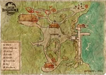Mapa do Acampamento Lua da Benquerença com anotações de áreas de interesse. Encontrado por Jorge Lagos em cima da mesa do sótão.[6] |